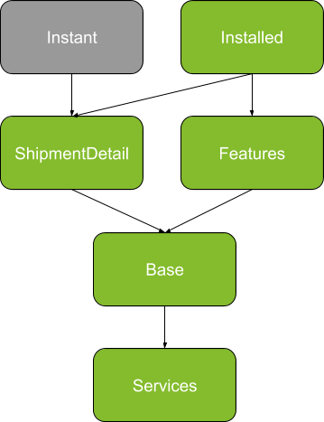From here on out we could also separate the so called ShipmentDetail screens from all other features. This is because the Shipment Detail part of the app is the primary feature we want to expose in our instant app. Finally we ended up with a module dependency setup like this: